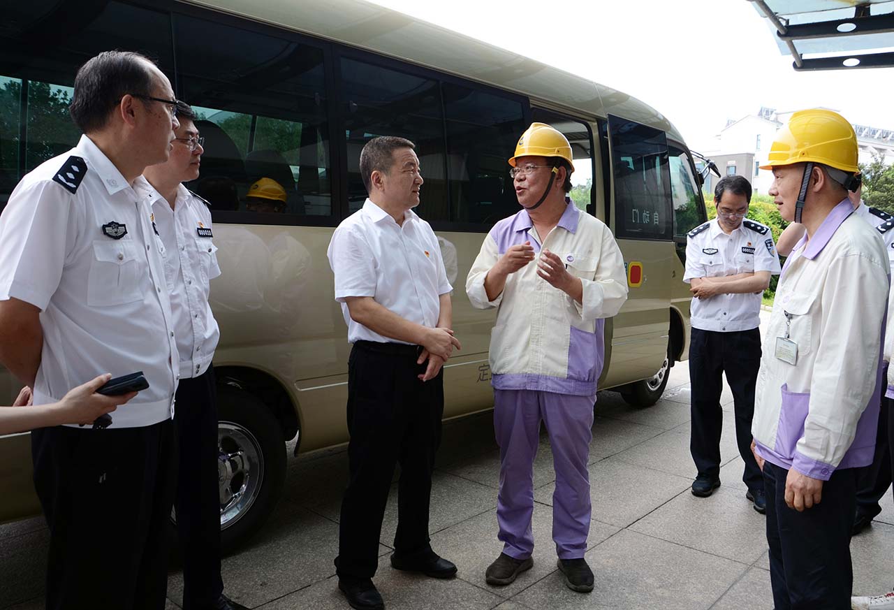 6月14日上午,省政府黨組成員、公安廳黨委書記王成國來公司檢查指導?;钒踩芸毓ぷ?。集團營銷總監(jiān)蔡江瑞、安全總監(jiān)胡永強陪同檢查。